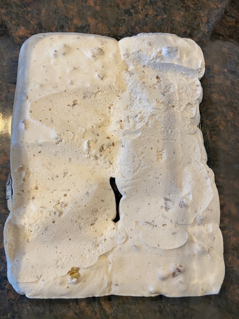 Instead of distinct little taffy rolls, the divinity had flattened and dried itself into a sheet.