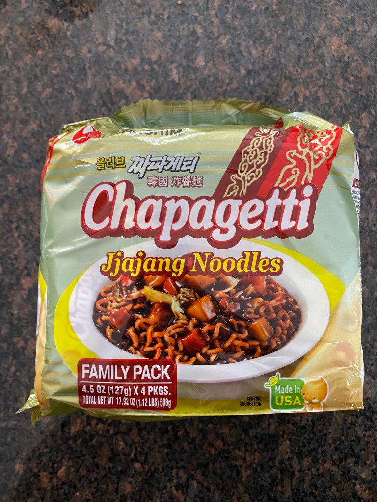 The Food: Joan’s well-meaning neighbor, Mark, planned a surprise party for Joan to get to know her neighbors. When Joan got to her apartment there were already people there and guests were still arriving and giving her hostess gifts like wine. A Korean exchange student subletting an apartment for the year while she studied graphic design at Columbia, brought a round bowl of microwaveable rice, a tin of low-sodium Spam, and a package of Chapagetti, that turned out to be the best ramen Joan had ever had. As a ramen fan myself, I had to try it.