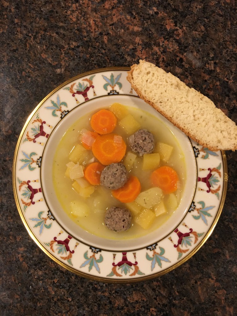 The soup was called boulettes (meatballs in French) or “bullet soup.” Zhaanat served it on New Year’s day with bread called bannock.